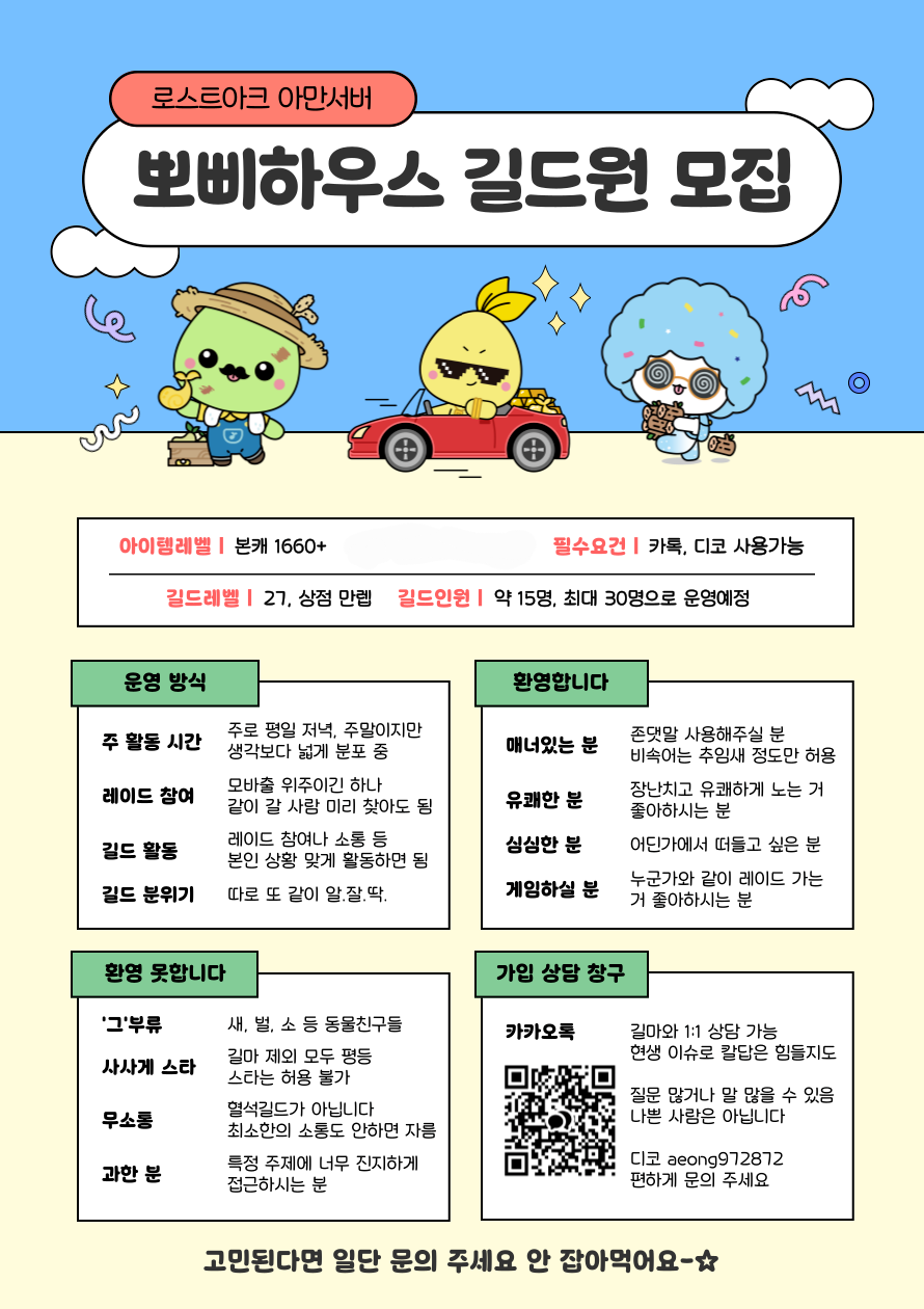 뽀삐하우스에서 신규 길드원분들 모십니다~!