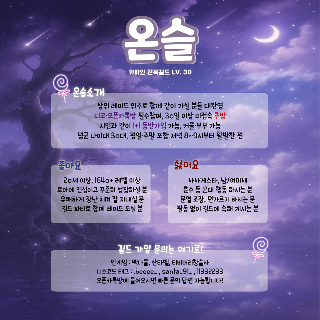 카마인 LV. 29 [온슬]에서 함께 할 길드원을 모집합니다!