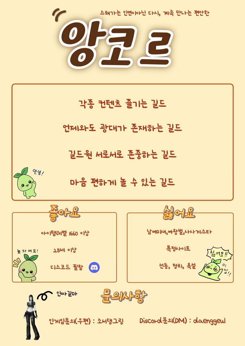 아만 친목길드 Lv.30 ❤앙코르❤ 길드원 모집중