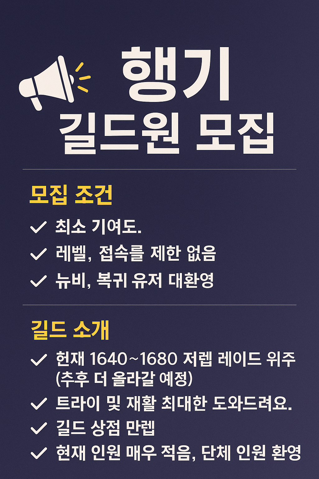 - ✅ 뉴비 & 복귀 유저 대환영!