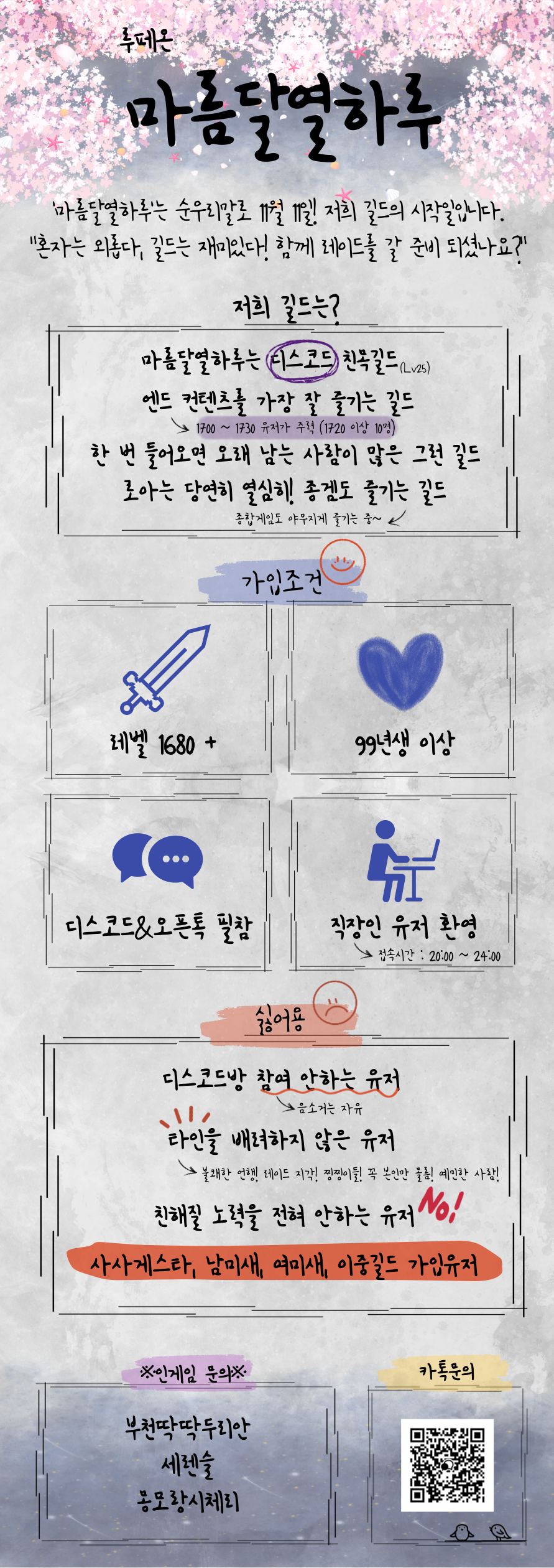 저희는 편하고 화기애애한 분위기를 추구하는 길드입니다.
