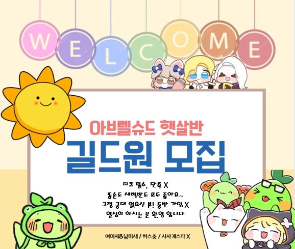 아브렐슈드 친목길드 ⚡햇살반⚡에서 30대 이상 길드원 모집 합니다!