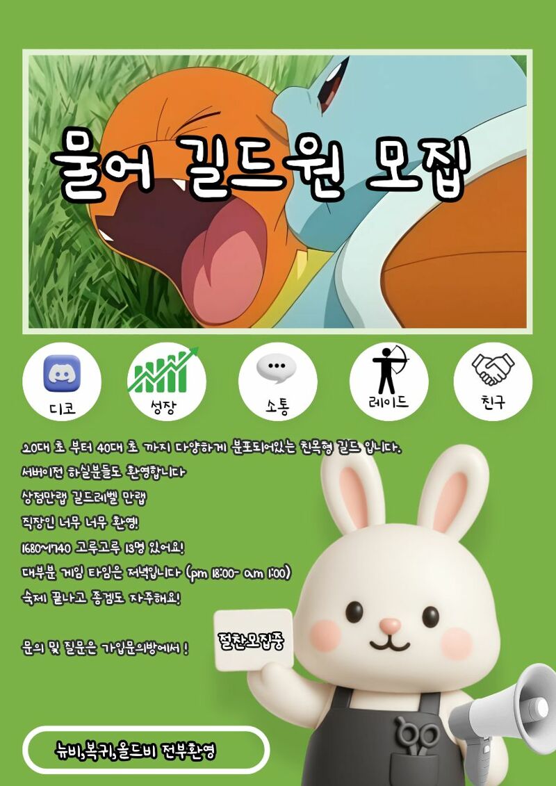 카단 ☁물어☁길드에서 길드원 모집합니다