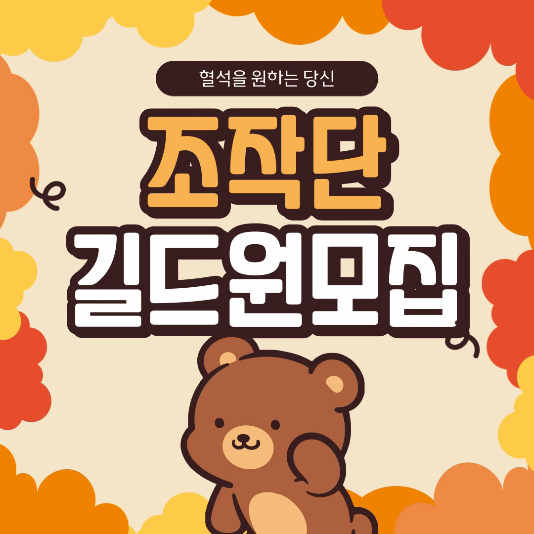 즉시 자유 가입 가능하니 혈석 파밍을 원하는 길드를 찾으시면 '조작단'으로 와주세요 :)