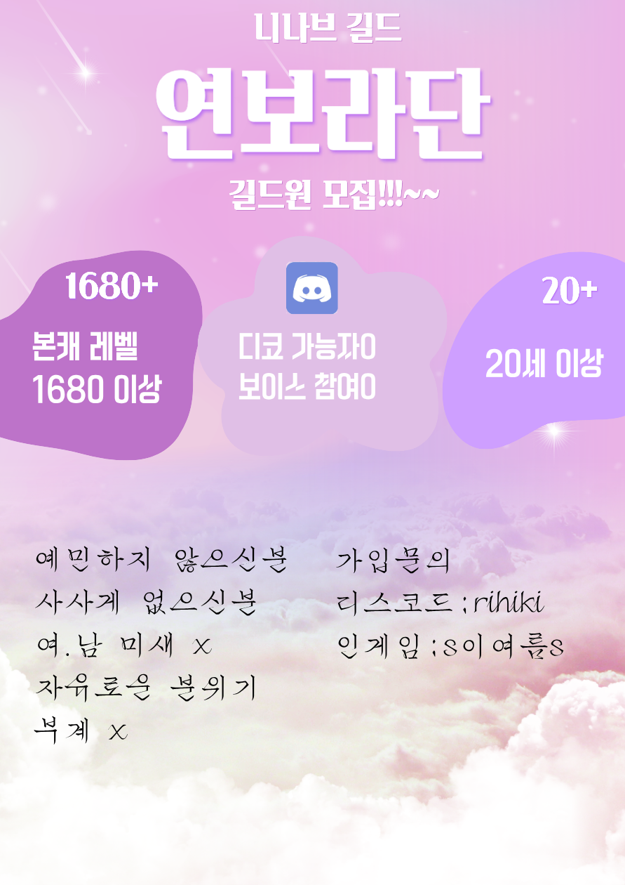 니나브 연보라단에서 길드원을 모집합니다