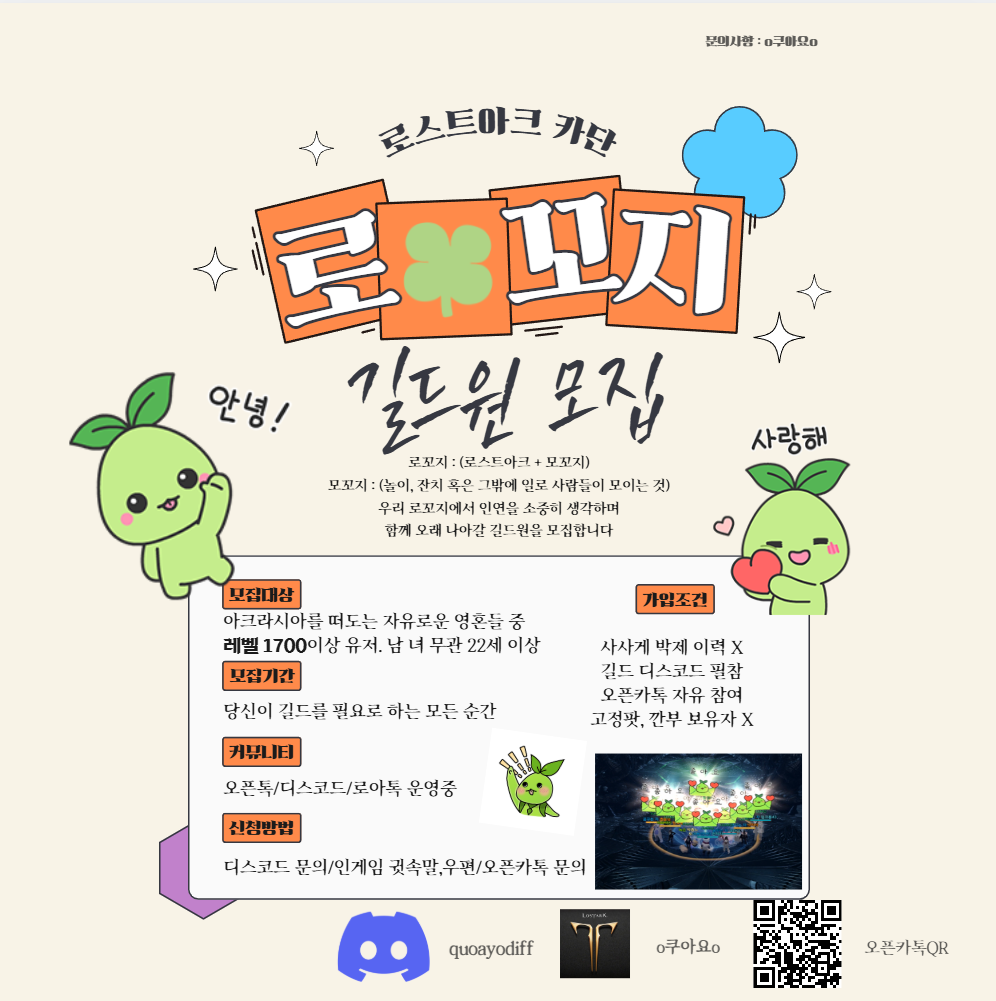 28레벨 길드 로꼬지재건중인 길드를 함께 일구어가실 가족을 모십니다.