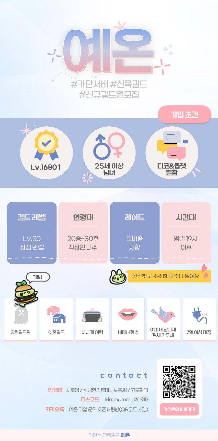 - 길드 내 고정공대 없음 필수 참여 콘텐츠 없음! 부담없이 즐겨요