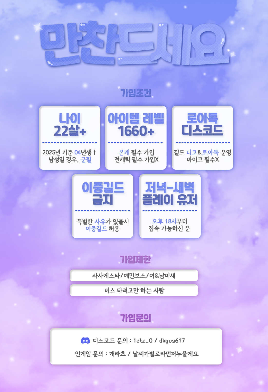 길드원 분들께 방해되지 않는 선에서 진행중이니, 참고해주시면 감사하겠습니다.