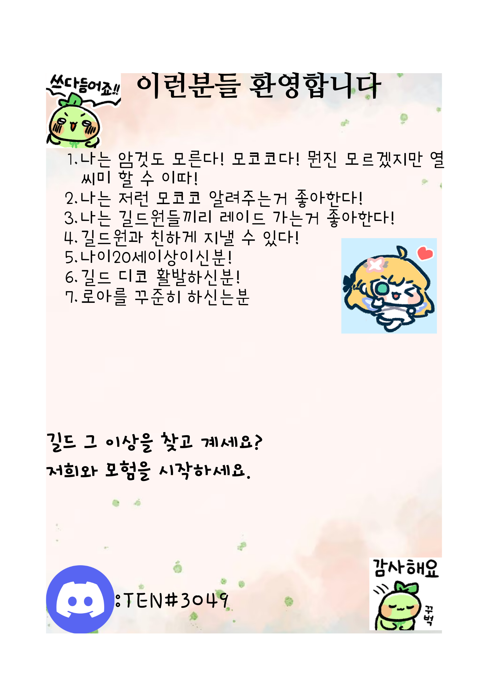 카제로스 ❀⸜(˶´ ˘ `˶)⸝❀ "달꽃비" 길드에서 같이성장해 나가실 길드원분들을 모집합니다~~!