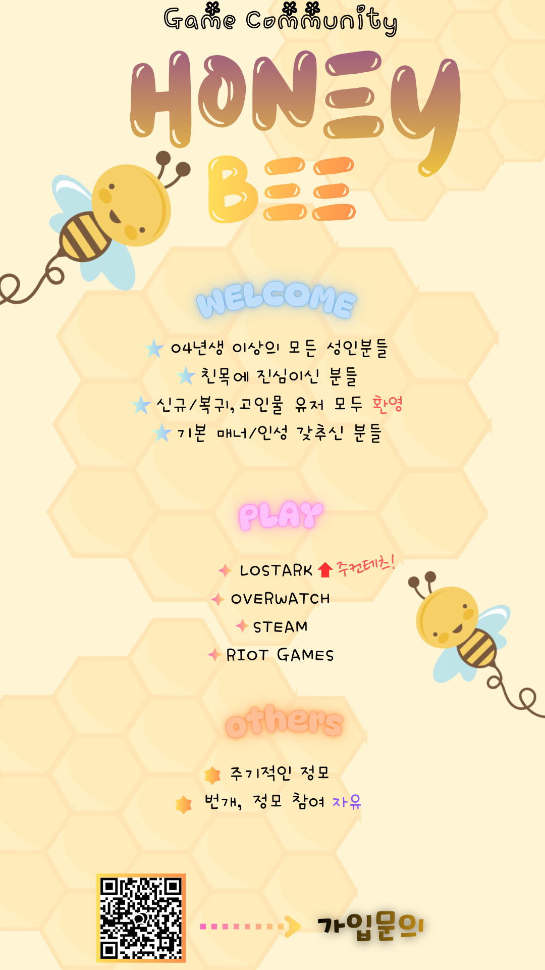 카마인 >신생< 친목길드 [HB꿀벌]에서 신규/복귀유저 모십니다! 새 글