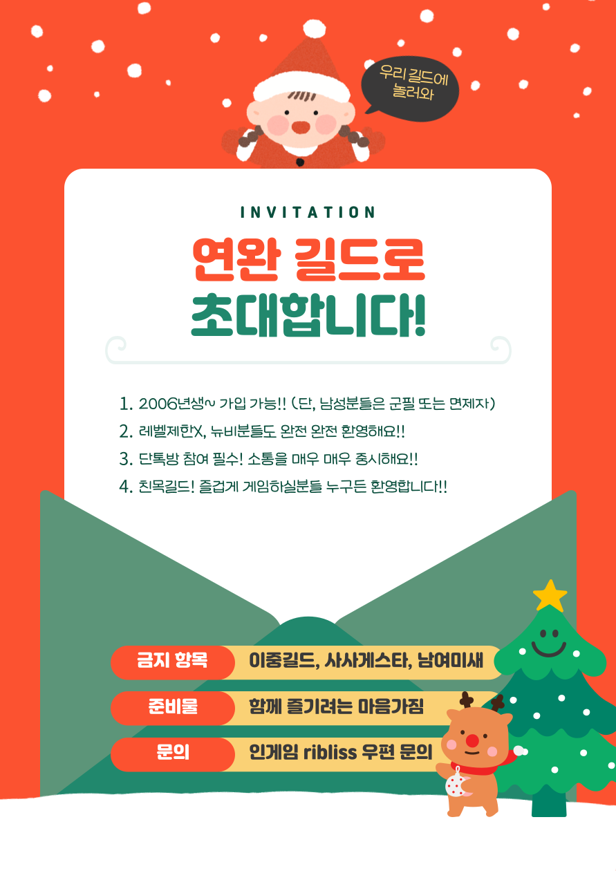 🚫친목을 중시하는 길드 입니다. 혈석길드, 소통을 하지 않고,소통이 되지않는 그런 유령 회원은 미리 정중히 사양합니다.