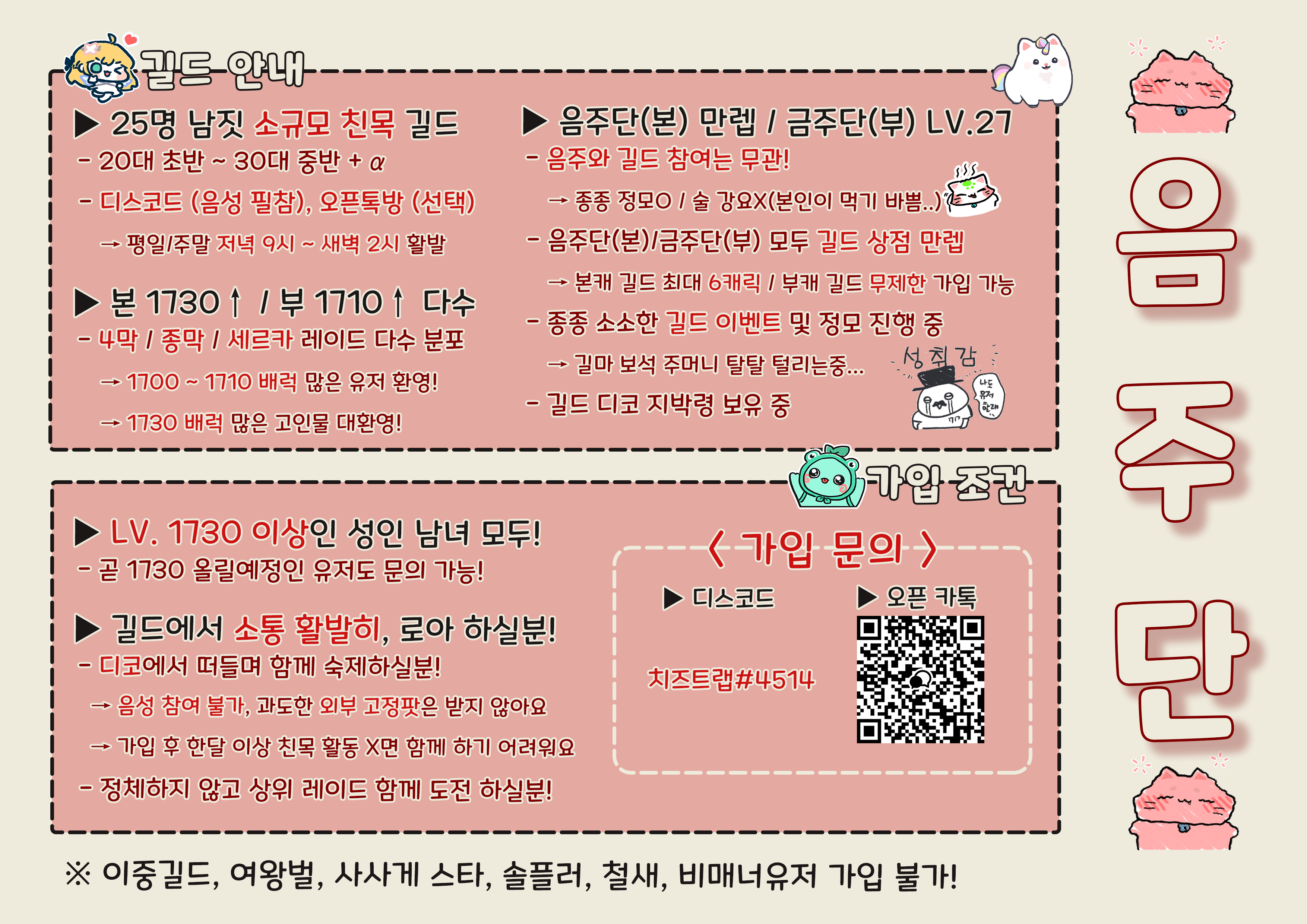 카제로스 카제로스 친목길드 『음주단』에서 새로운 길드원을 모집합니다 새 글