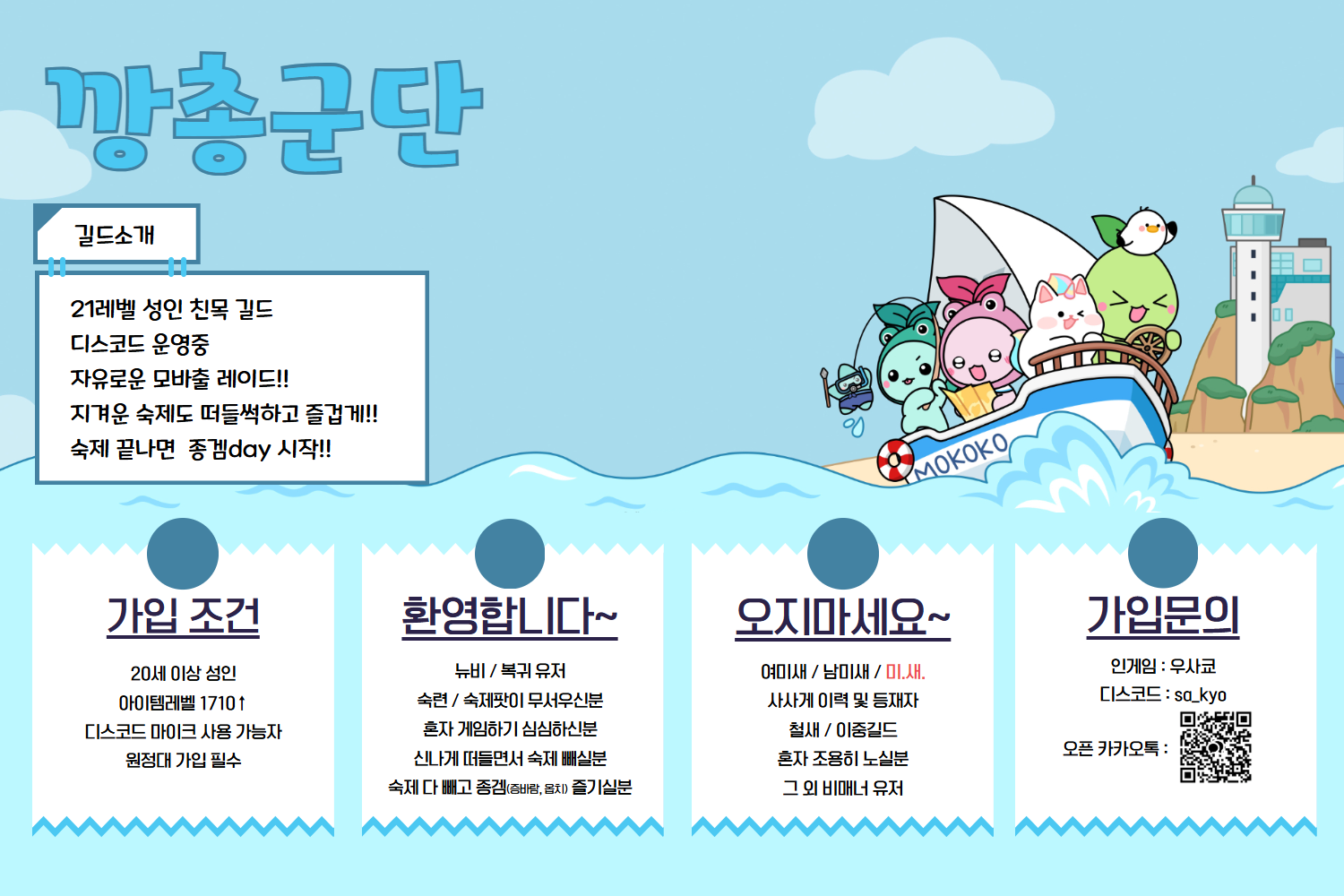 ※ 빠른 가입문의는 디스코드 우사쿄(sa_kyo)로 DM주시거나 아래 오픈채팅으로 문의 바랍니다!!