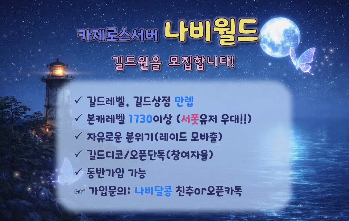 카제로스 소규모 친목길드 [나비월드]에서 함께하실 서폿님을 찾습니다! 새 글