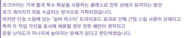 기존보다 나아진점이 이펙트개선과 호크샷스킬 추가 외엔 없음.