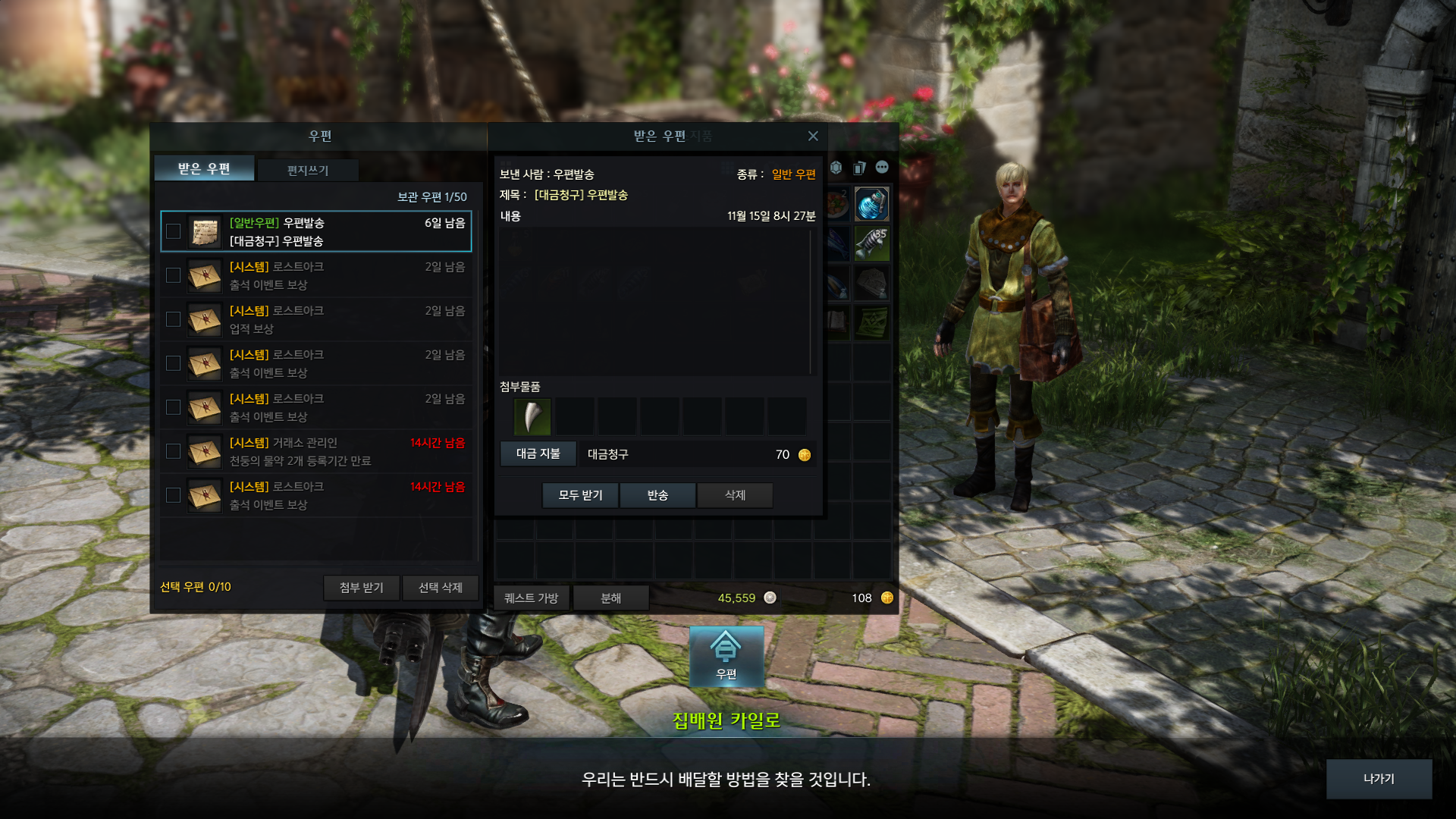 대금청구하고 모두 받기 누르면 70골드가 사라지는 마술!! 이런놈들 좀 있으니 조심하세요