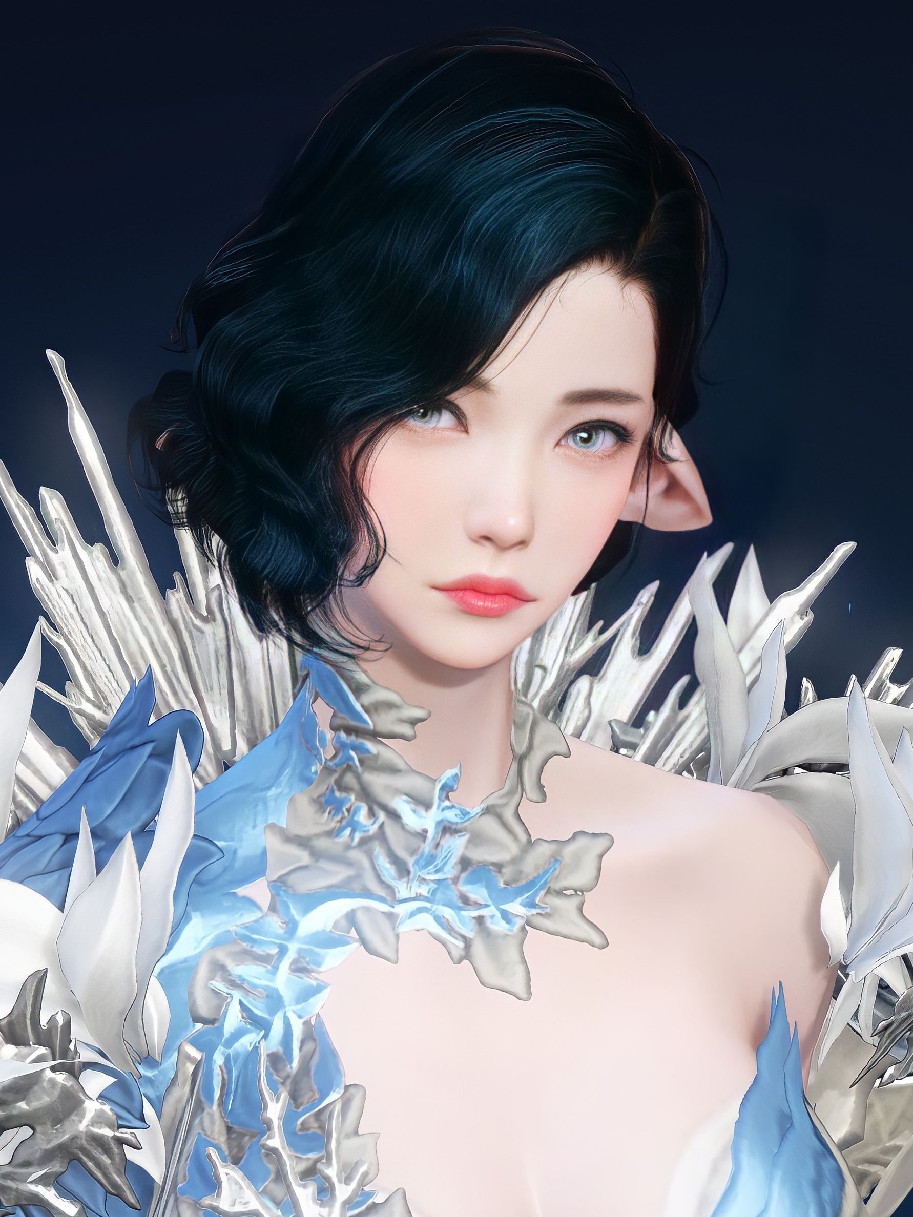 실린 블루블랙 웨이브 단발