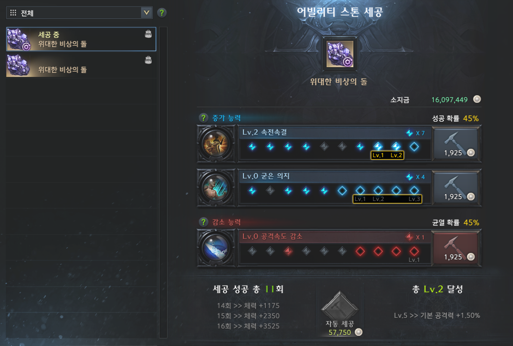 어빌리티 스톤 세공 레벨