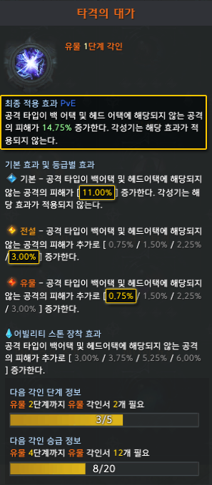 - 어빌리티 스톤에 부여된 각인이 기습의 대가, 예리한 둔기인 경우 : 예리한 둔기 각인 효과만 적용됩니다.