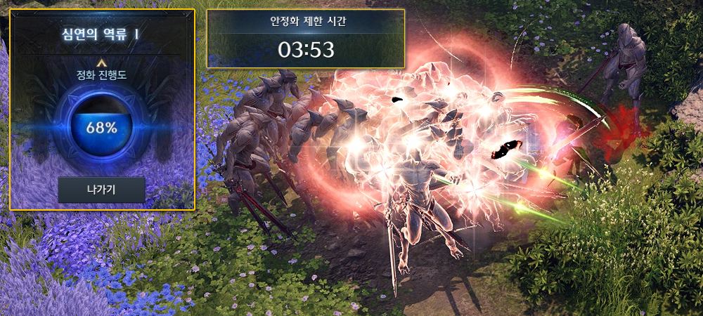• 제한 시간 내에 여러 지역을 이동하며, 정화 게이지 100%에 도달하면 던전 공략에 성공합니다.