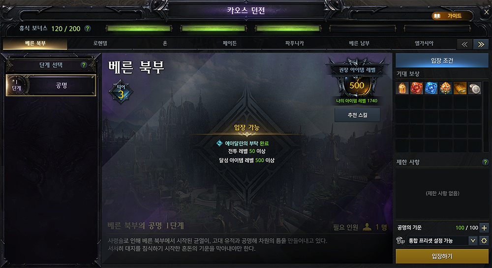 • 전투 레벨 50 이상, 달성 아이템 레벨 500 이상