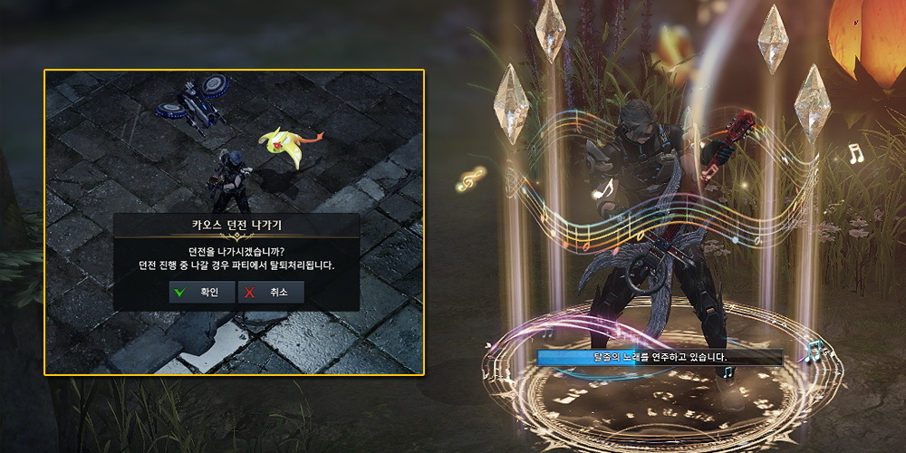 ※ 던전 완료 후 '탈출의 노래'를 연주하면, 던전 입장 전 캐릭터가 위치해 있던 장소로 이동합니다.