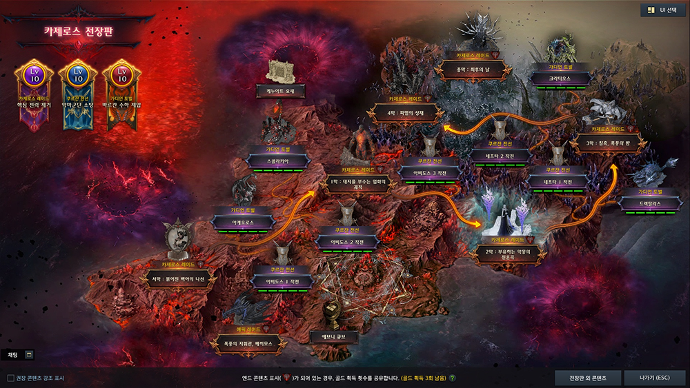 • 콘텐츠 목록에서 UI 선택 메뉴에서 카제로스 전장판을 활성화 할 수 있습니다.
