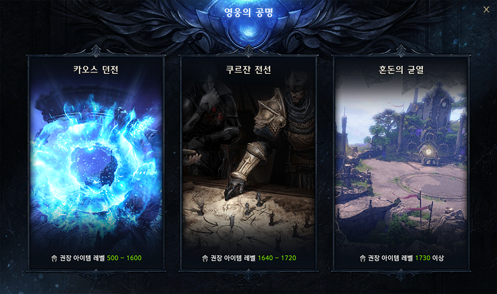 • 쿠르잔 전선 : 달성 아이템 레벨 1640 ~ 1720