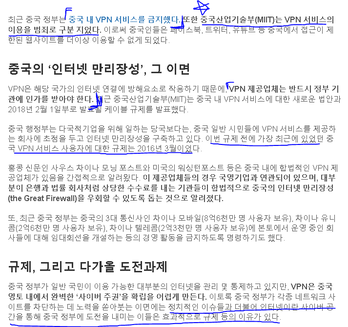 중국인들이 해외 게임을 하는게 불법인지는 잘 모르겠으나, 현제로썬 중국은 vpn을 통해 불법으로 우회하여 해외 사이트를 접속하는 것을 불법으로 지정하고 있음은 알 수 있었습니다.