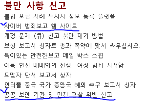 "사이버 범죄보고 웹 사이트" / "공공 보안 기관 및 민간 경찰 위반 신고"에 해당하는지는 솔직히 저로썬 잘 모르겠습니다. (혹시 아시는 분이 계신다면 댓글 달아주세요)