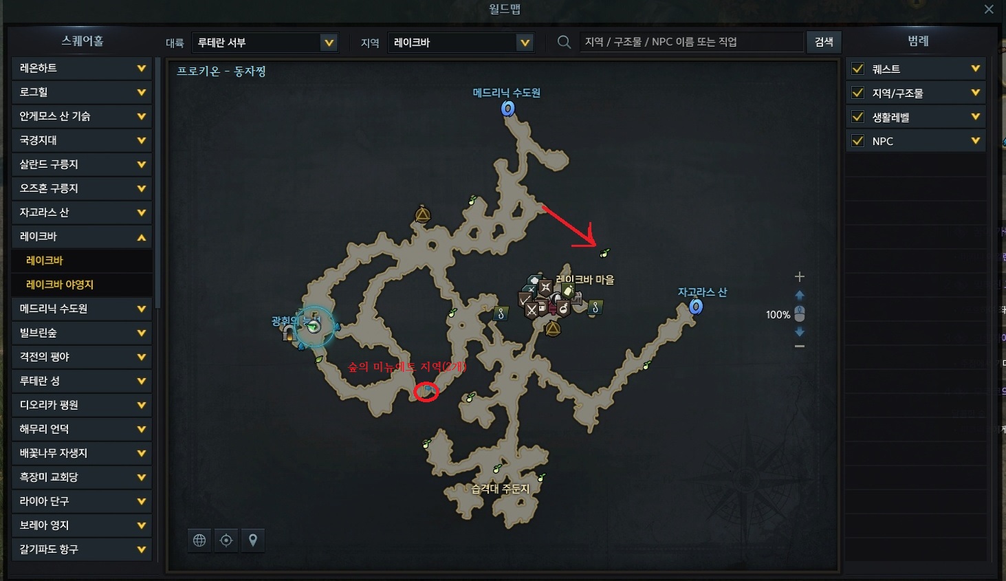 - 레이크바 - 총 18개(필드 11개, 광휘의 능선 7개) / 숲의 미뉴에트(2개)