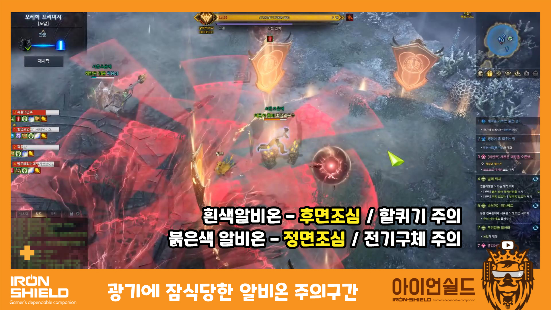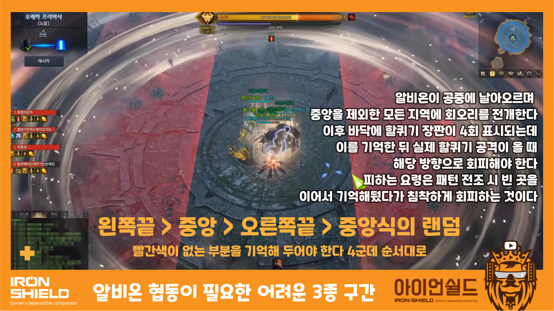 안전지대를 기억해 두었다가 , 파티원과 같이 이동 ( 매우 빠르게 장판 미리보기를 하기 때문에 집중!~~)