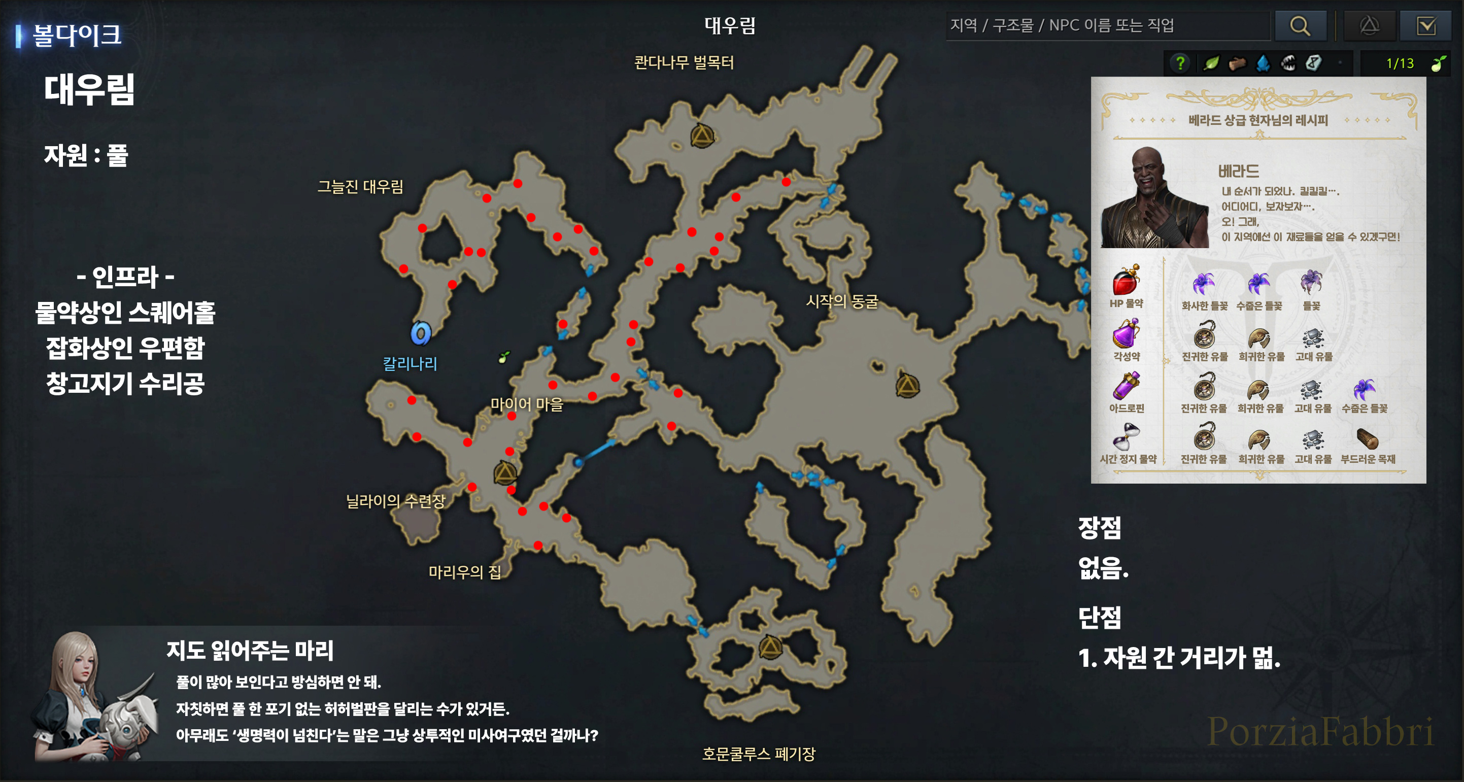 생활 드러그스토어에 도전해볼까? 물약 재료 채집 지도 리뉴얼! 13. 볼다이크 편.
