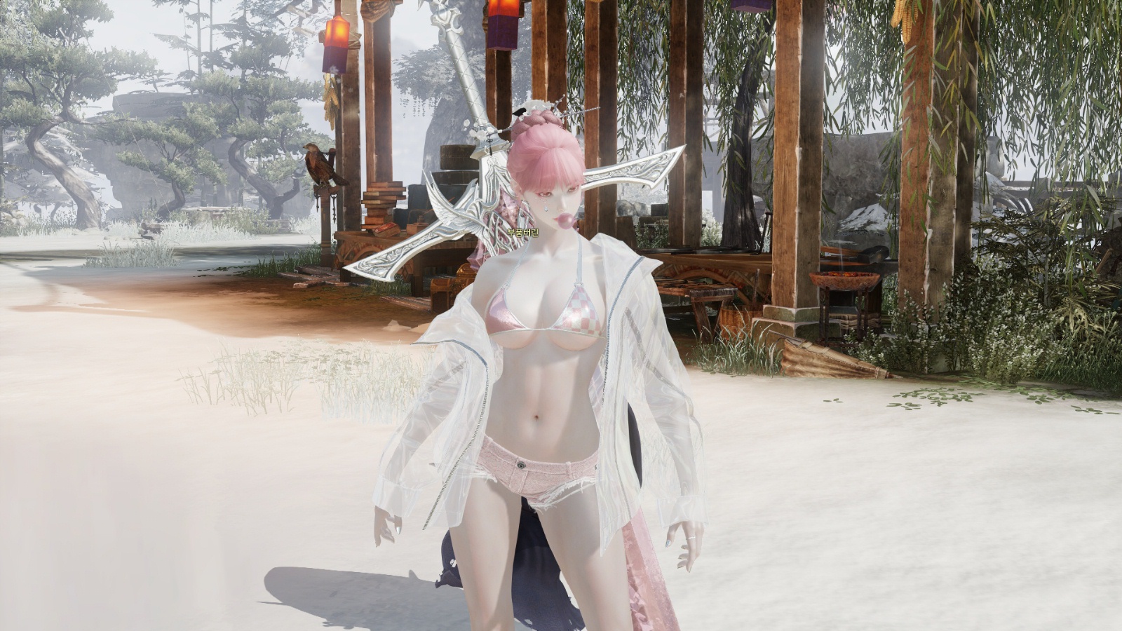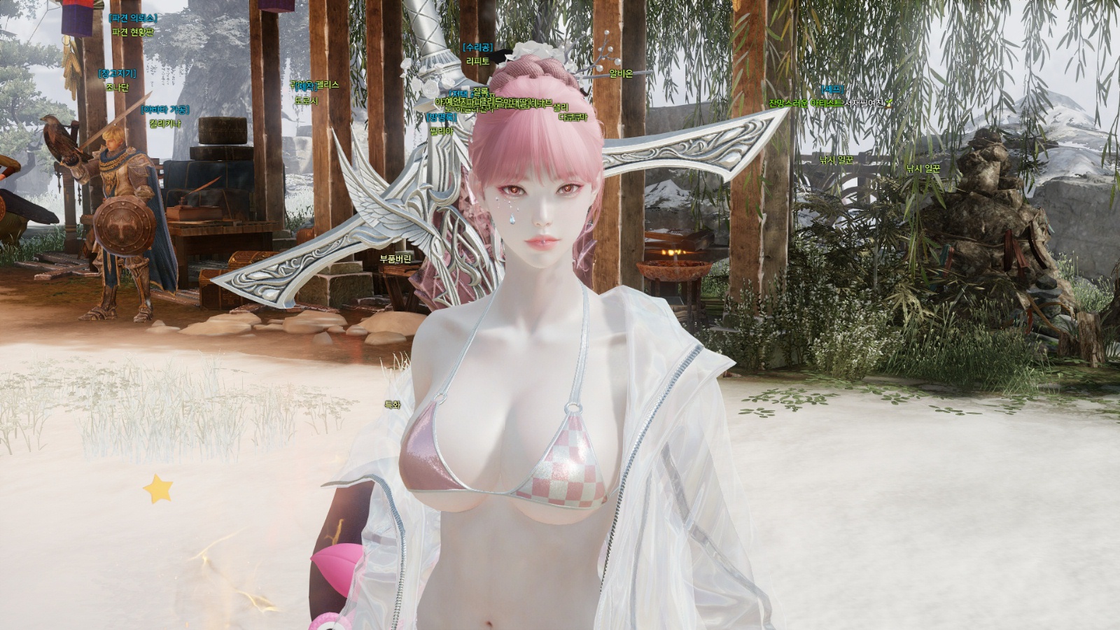 전사(여) 핑크 머리 슬레